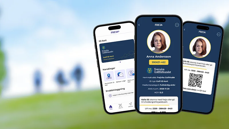 För att skaffa dig ett Golf-ID-kort behöver du ladda ner och registrera dig i den kostnadsfria appen Freja+. Läs mer om hur du gör det här.
